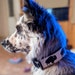 This collar features a hand printed bison pattern sewn atop heavy duty webbing for added support. It is 1 1/2” wide and is available in both Martingale and standard buckle styles. One of my favorite elements of this collar is the raw edge that gives it a more handmade/laid back feel.